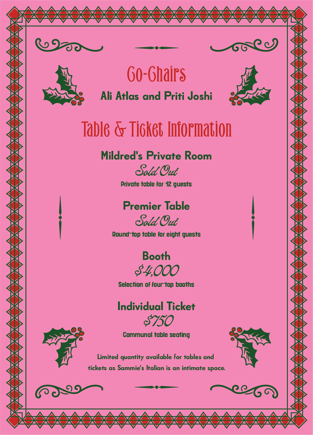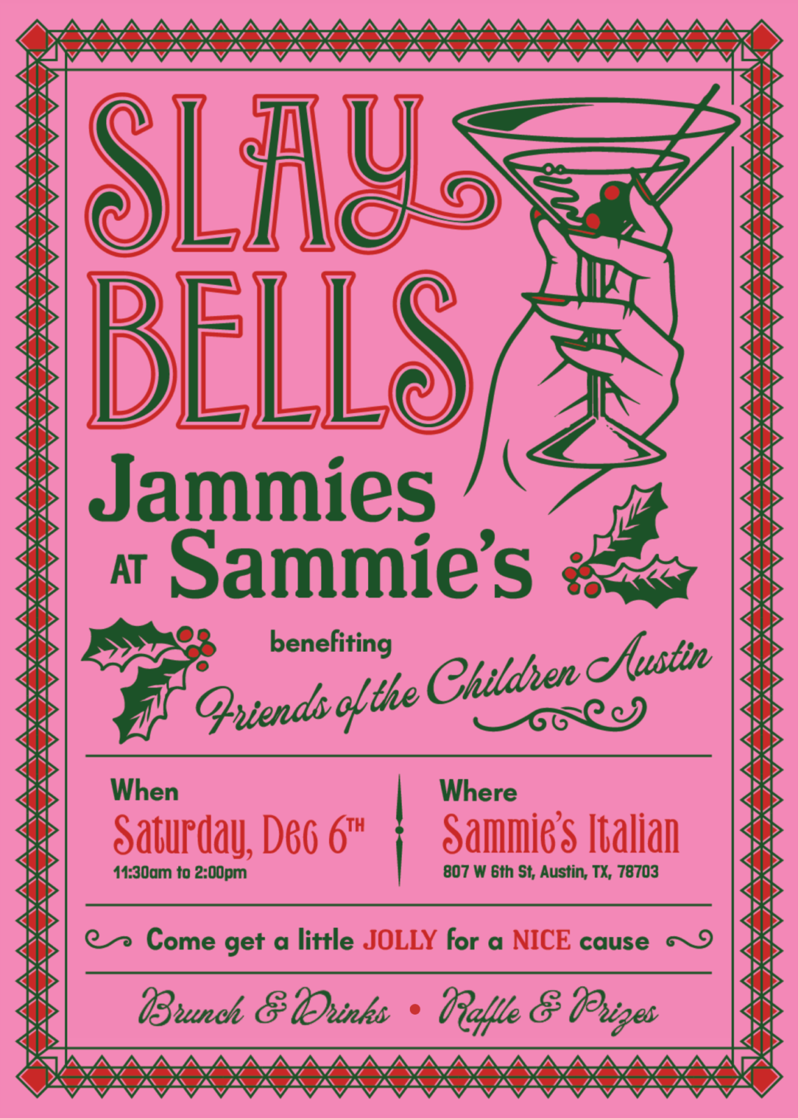 Join us on Saturday, December 6th, at Sammie's Italian for our third annual Slay Bells, Jammies at Sammie's brunch and festive fundraiser. Come and enjoy delicious food and drinks while wearing your most festive pajamas. The afternoon will be filled with great entertainment, auction packages, and more to raise critical funds to support our program and kick off the holiday season with a bang.