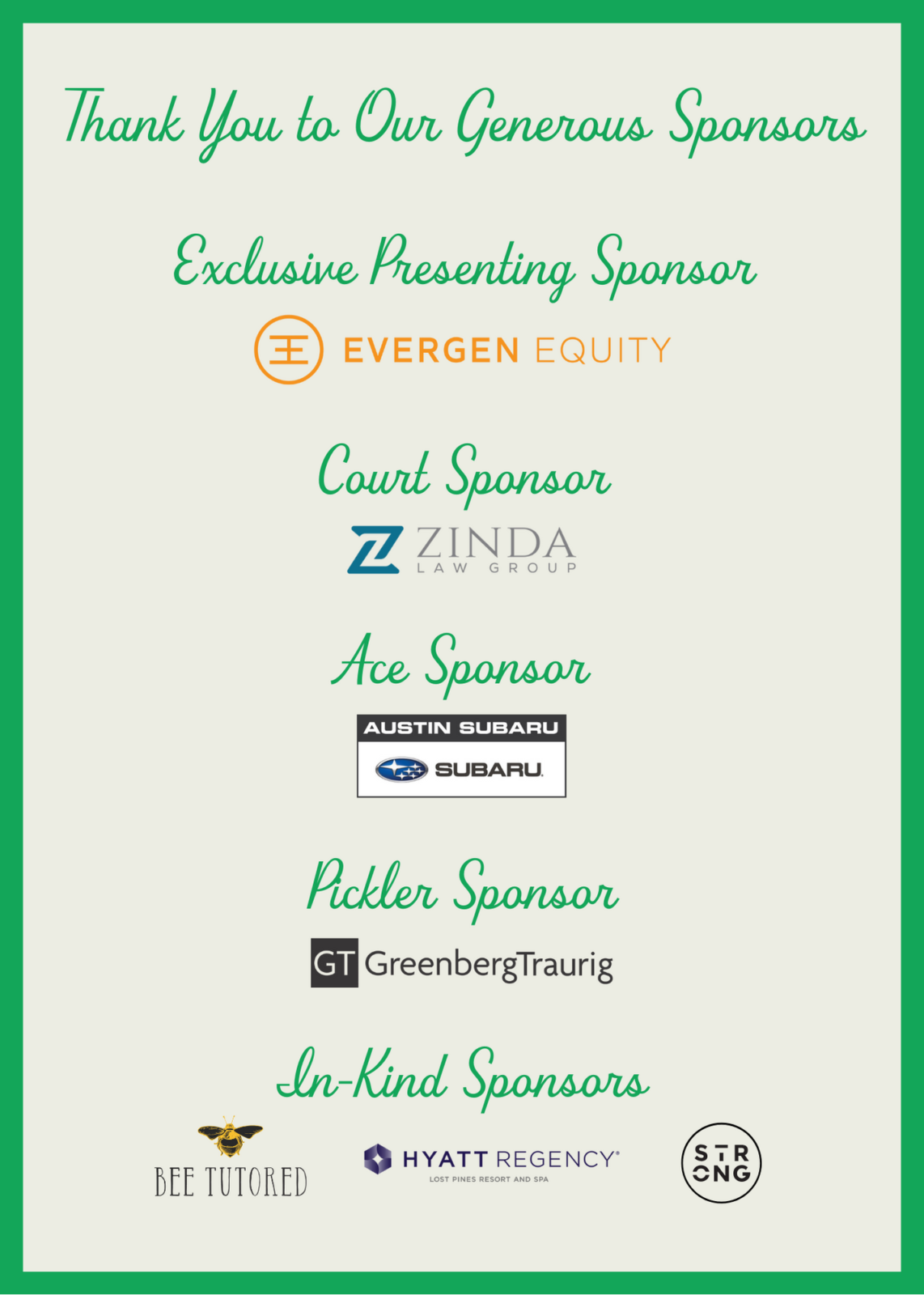 Sponsorships still available. Contact Michelle Monroe at mmonroe@friendsaustin.org to explore opportunities.